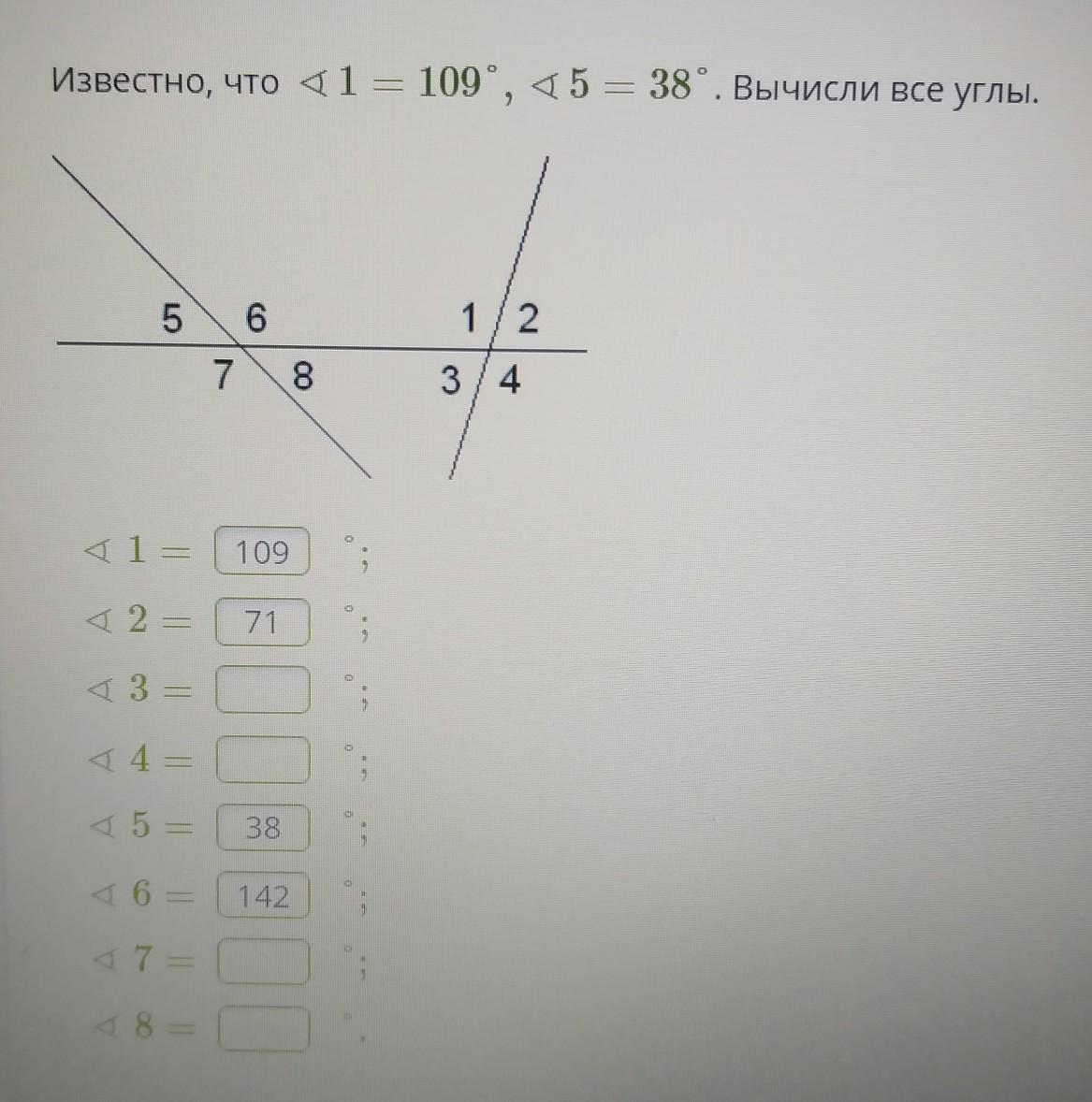 1 - 109,2 - 71, 3 - 71, 4 - 109, 5 - 38, 6 - 142, 7 - 142, 8 - 38.
