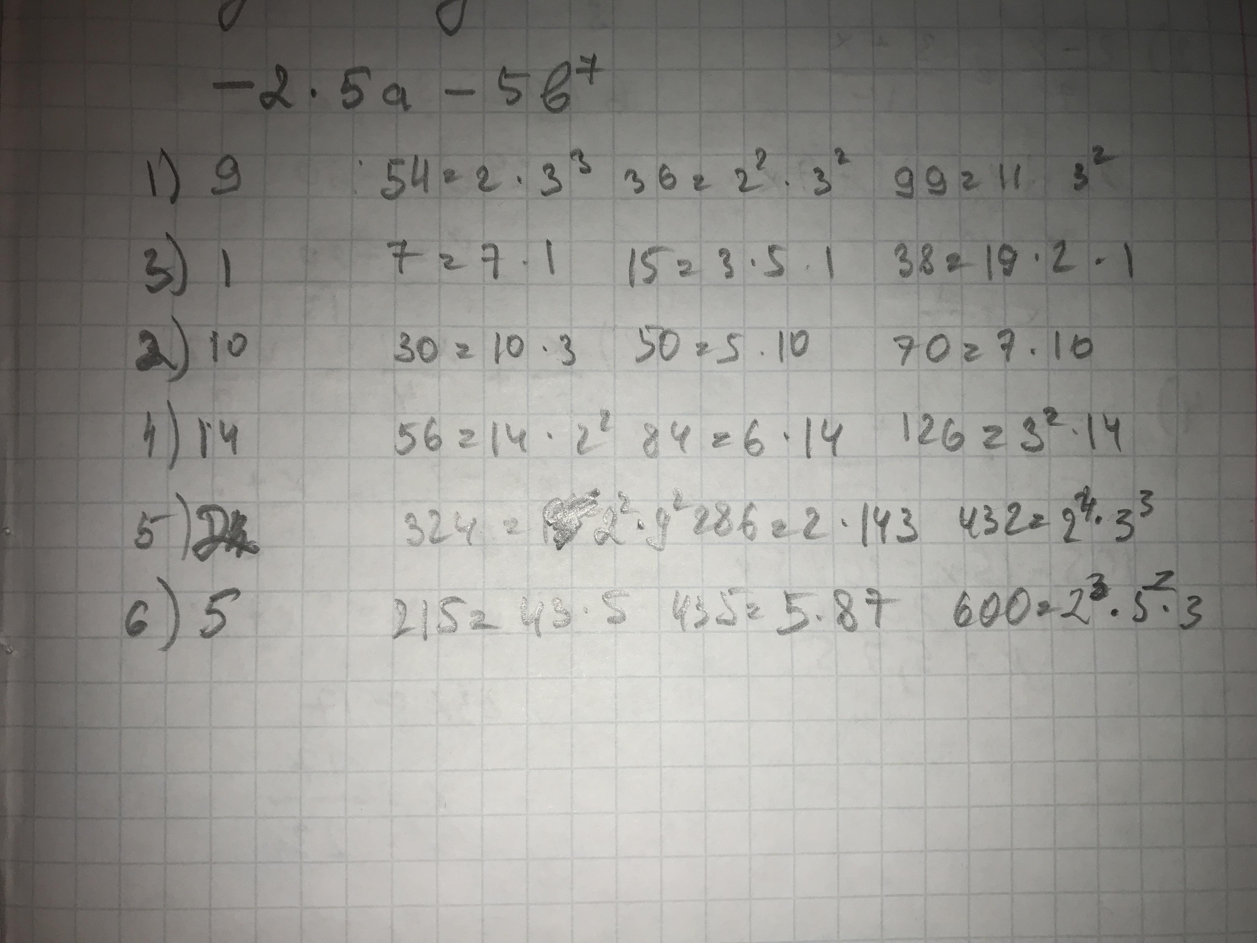 1) 54, 36 и 99; 3) 7, 15 и 38; 5) 324, 286 и 432;