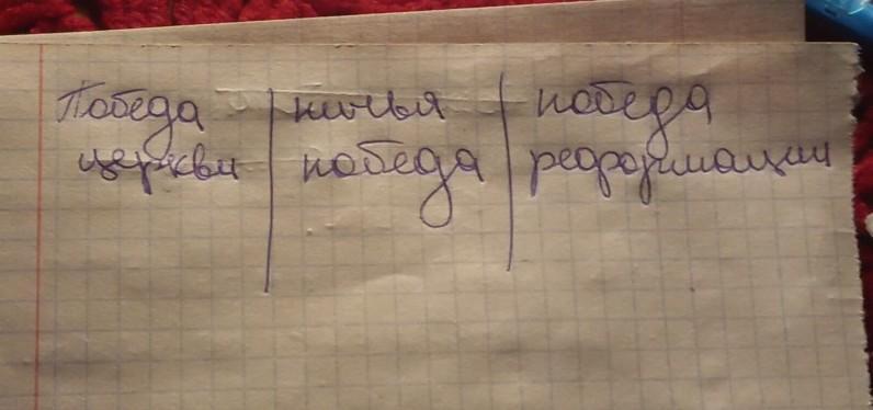Это единственное, что я поняла))) Просто у тебя не указано, какая именно церковь, победа(ничья) и какая именно реформация)))