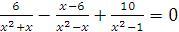 6/x(x+1) - (x-6)/x(x-1) + 10/(x-1)(x+1) =0
