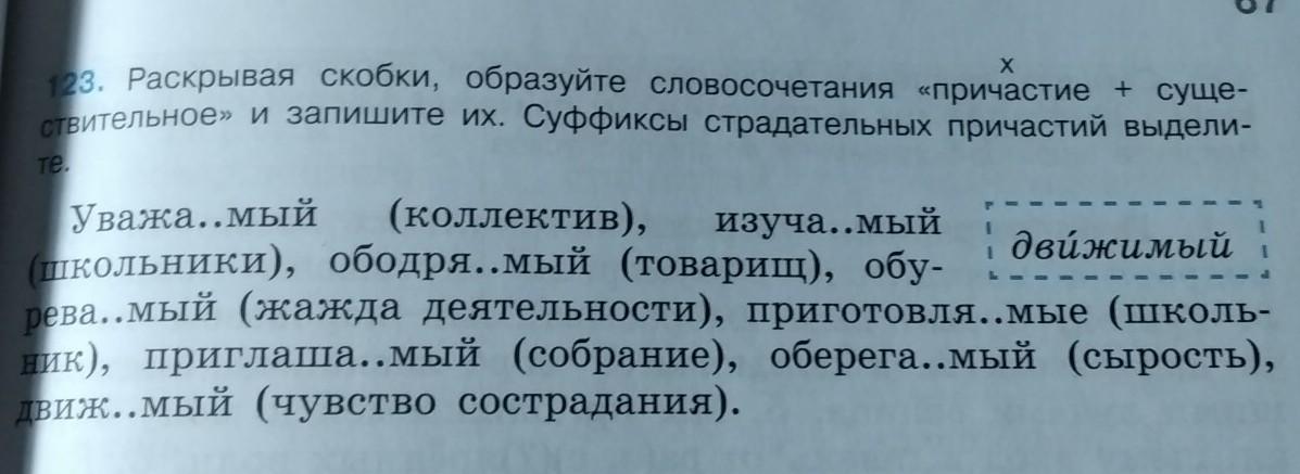 уважаемый коллективом изучаемый школьниками ободряемый товарищем обуреваемый жаждой деятельности приготовляемые школьниками