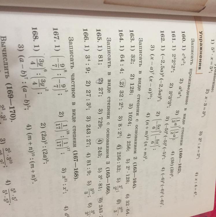 167.1)(-9/7)^8 :(-9/7)^5=(-9/7)^(8-5)=(-9/7)^3