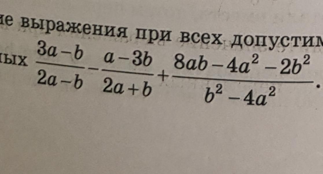 ((3a-b)*(2a+b)-(a-3b)*(2а-b)-8ab+4a²+2b²)/(4a²-b²)=