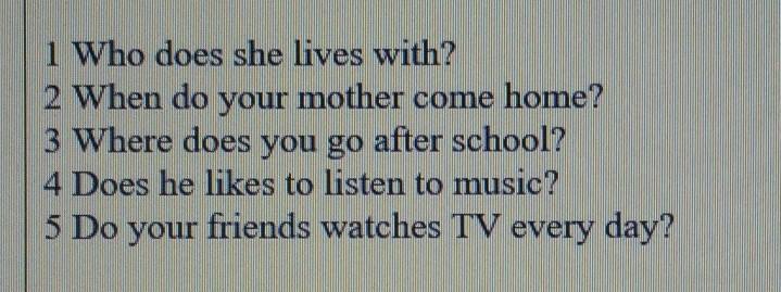 Найди одну ошибку в каждом вопросе.