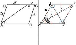 2) Бісектриса гострого кута паралелограма ділить протилежну сторону на відрізки, один з яких в 2 рази менша за другу, менша сторона паралелограма дорівнює 4 сантиметри