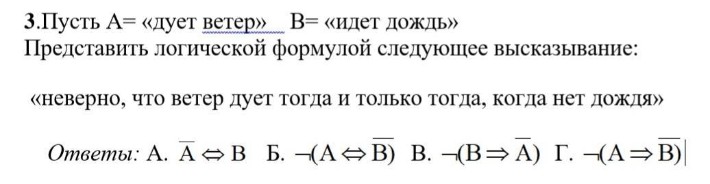 «неверно, что ветер дует тогда и только тогда, когда нет дождя»