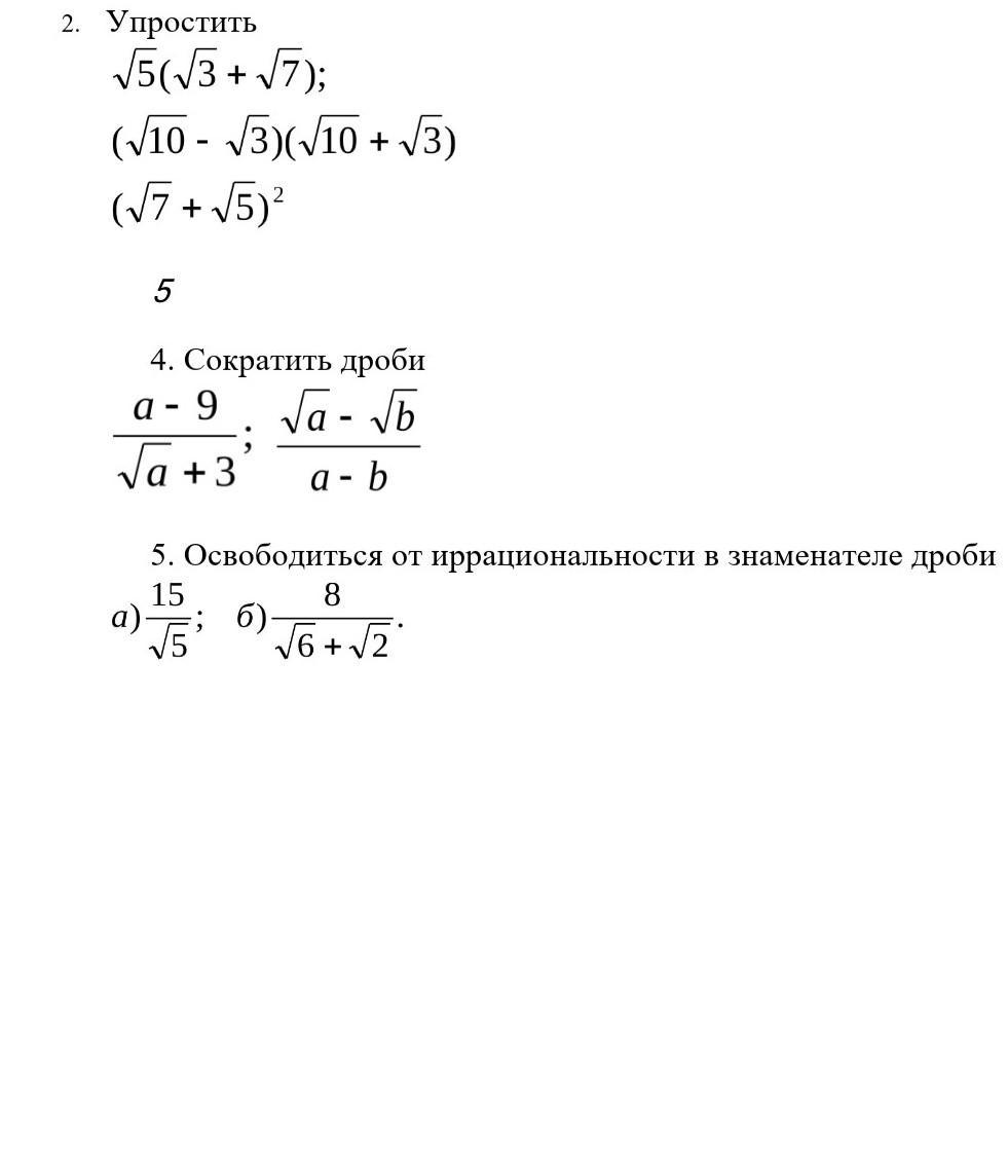 √5(√3+√7)=√5*√3+√5*√7=√15+√35;