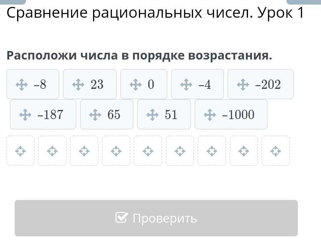1)-1000 2)-202 3)-187 4)-8 5)-4 6)0 7)23 8)51 9)65