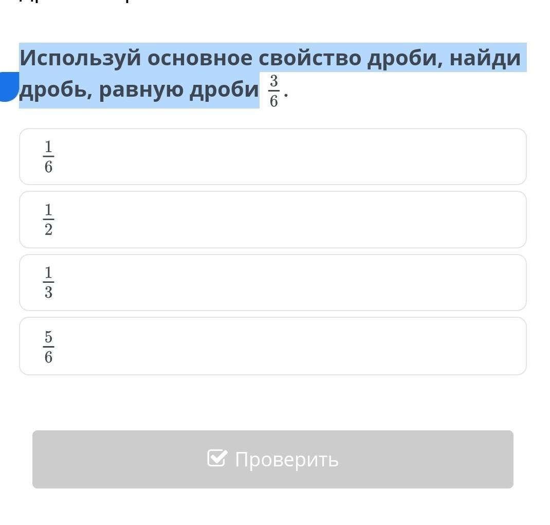 основное свойство дроби: если числитель и знаменатель умножить или разделить на одно и тоже число ( отличное от нуля) , значение дроби не изменится