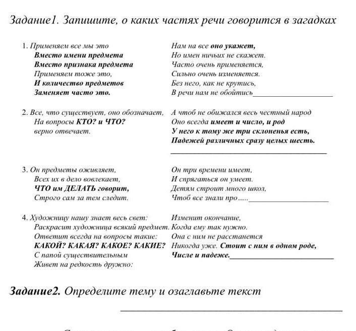 В загадках скрыты такие части речи, как: