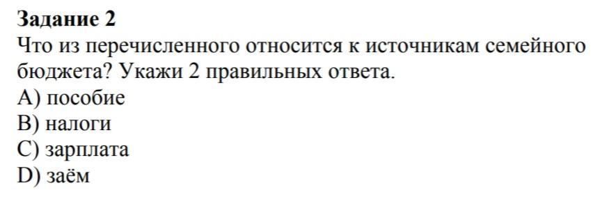 Что из перечисленного относится к источникам семейного бюджета?Укажи 2 правильных ответа