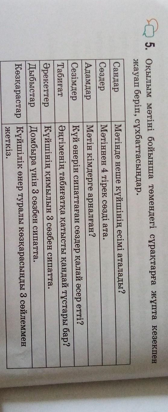 5. Оқылым мәтіні бойынша төмендегі сұрақтарға жұпта кезекпен