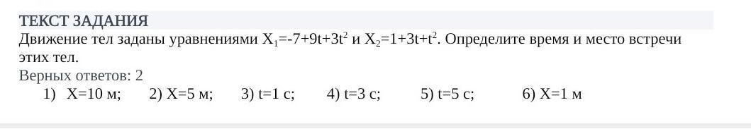 Движение тела задано уравнением. Определите время и место встречи этих тел, желательно с решением