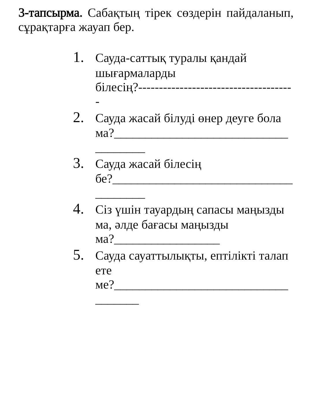 2) Ия сауда жасау өнер