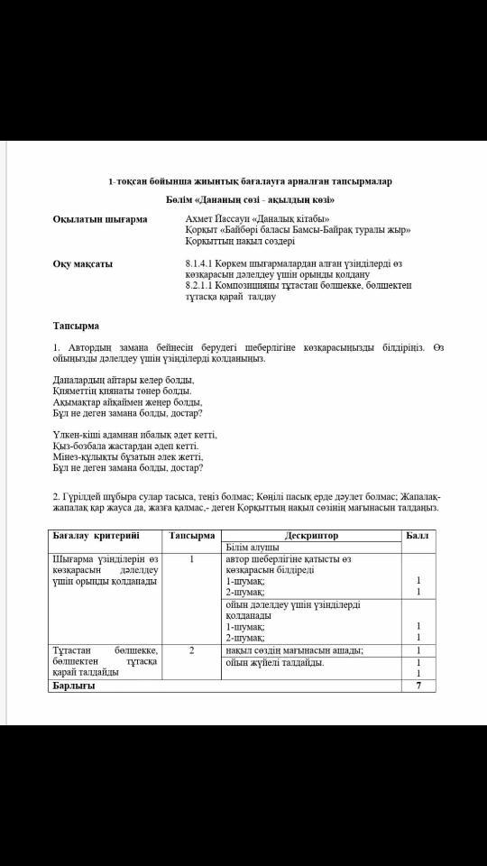 1 Достық жайлы айтыл ған ал 2 де осы мәтінге қарап отырып өз ойынды жаз