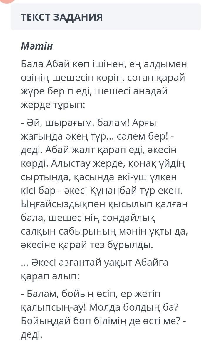 вопрос звучит так: о чем спросил Кунанбай Абая?