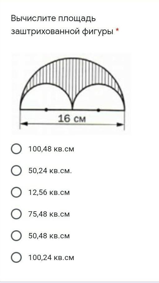 Площадь маленького полукруга будет равна :