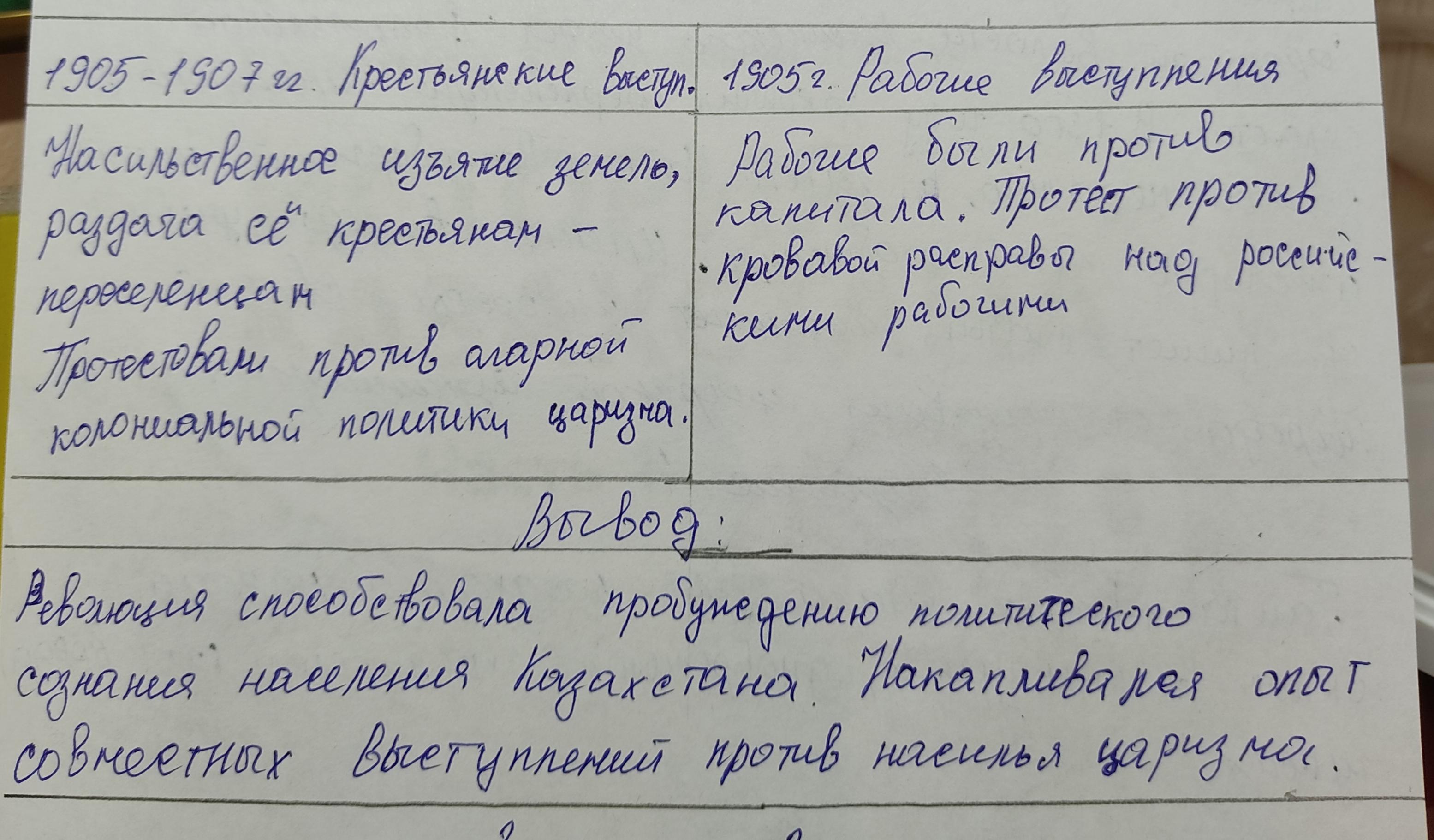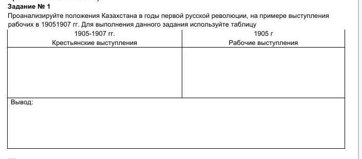 Проанализируйте положение Казахстана в годы первой русской революции например выступления рабочих в 1905 1907 годах для выполнения данного задания Используйте таблицу.