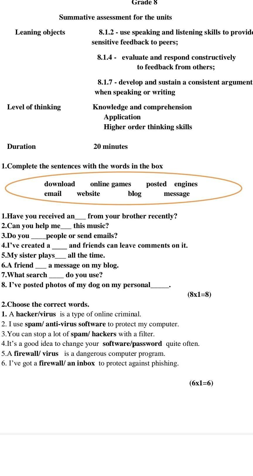 Leuning objects 8.1.2 - use speaking and listening skills to provide