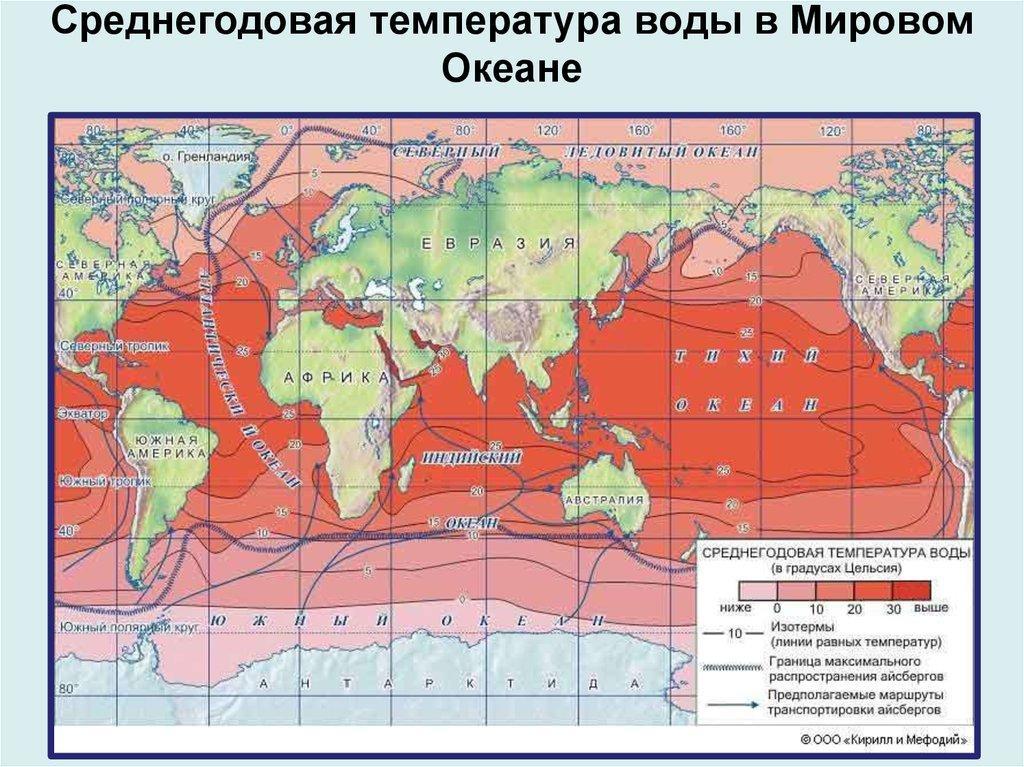 Как видно из карты, которая дана ниже в приложении, средняя температура экваториальных водных масс +25°.