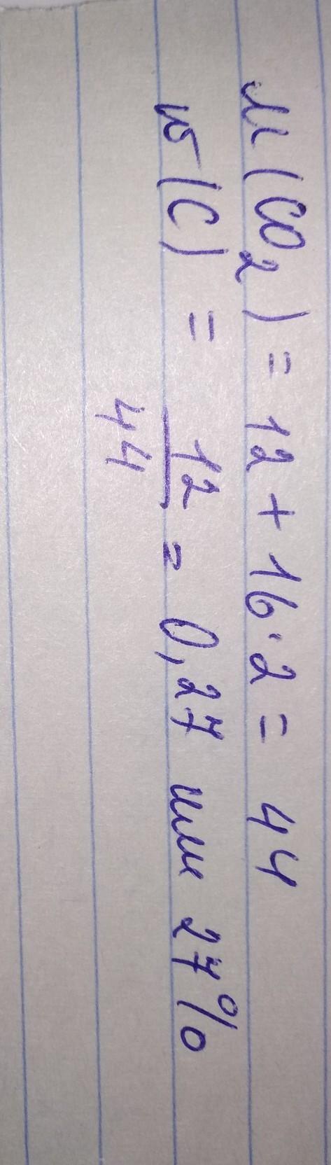 ПОМОГИТЕ СРОЧНО ДАЮ 20 БАЛЛОВ Рассчитайте массовую долю углерода С в сложном веществе окси углерода (IV) CO2 не пишите всякую фигню