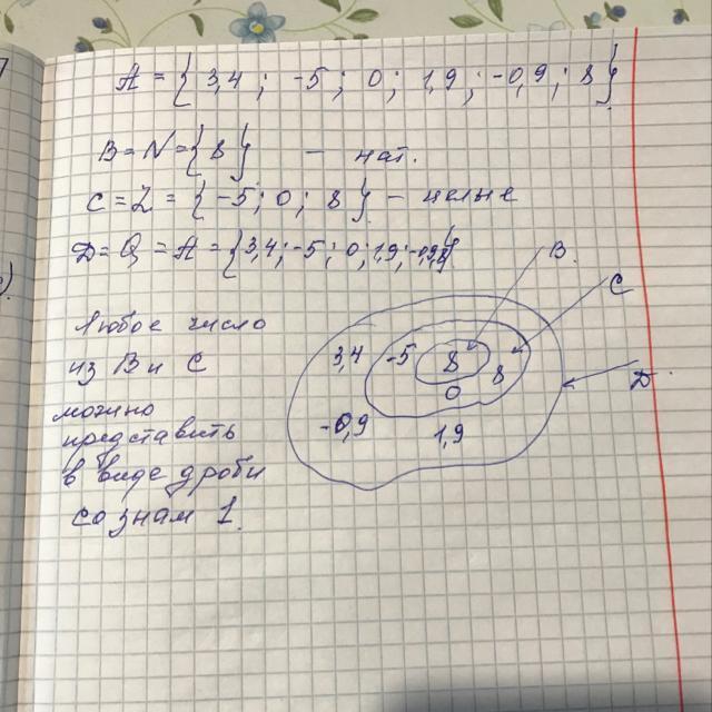 Выделите из множества А подмножества: B – натуральных чисел, С – целых