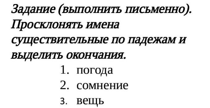 Везде окончание последняя буква, кроме творительного падежа, там окончание "ем" и предложный "ии"
