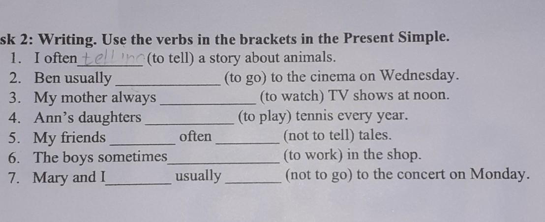 Task 2: Writing. Use the verbs in the brackets in the Present Simple.