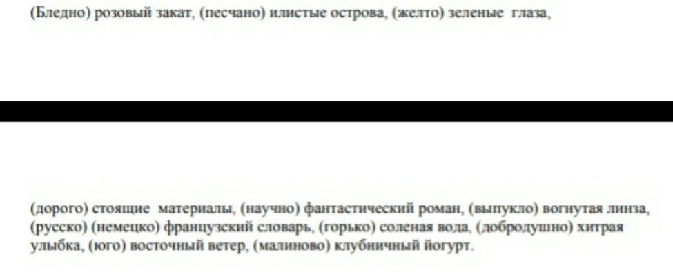 Дорогостоящие материалы, научно-фантастический роман, выпукло-вогнутая линза, русско-немецко-французский словарь, горько-соленая вода, добродушно-хитрая улыбка, юго-восточный ветер, малиново-клубничный йогурт