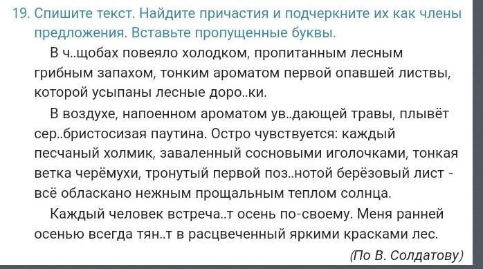 спишите текст. Найдите причастия и подчекните их как члены предложения .Вставьте пропущенные буквы