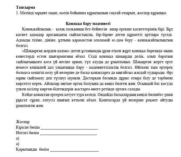 1)Кіріспе бөлім: Қонақжайлылық туралы