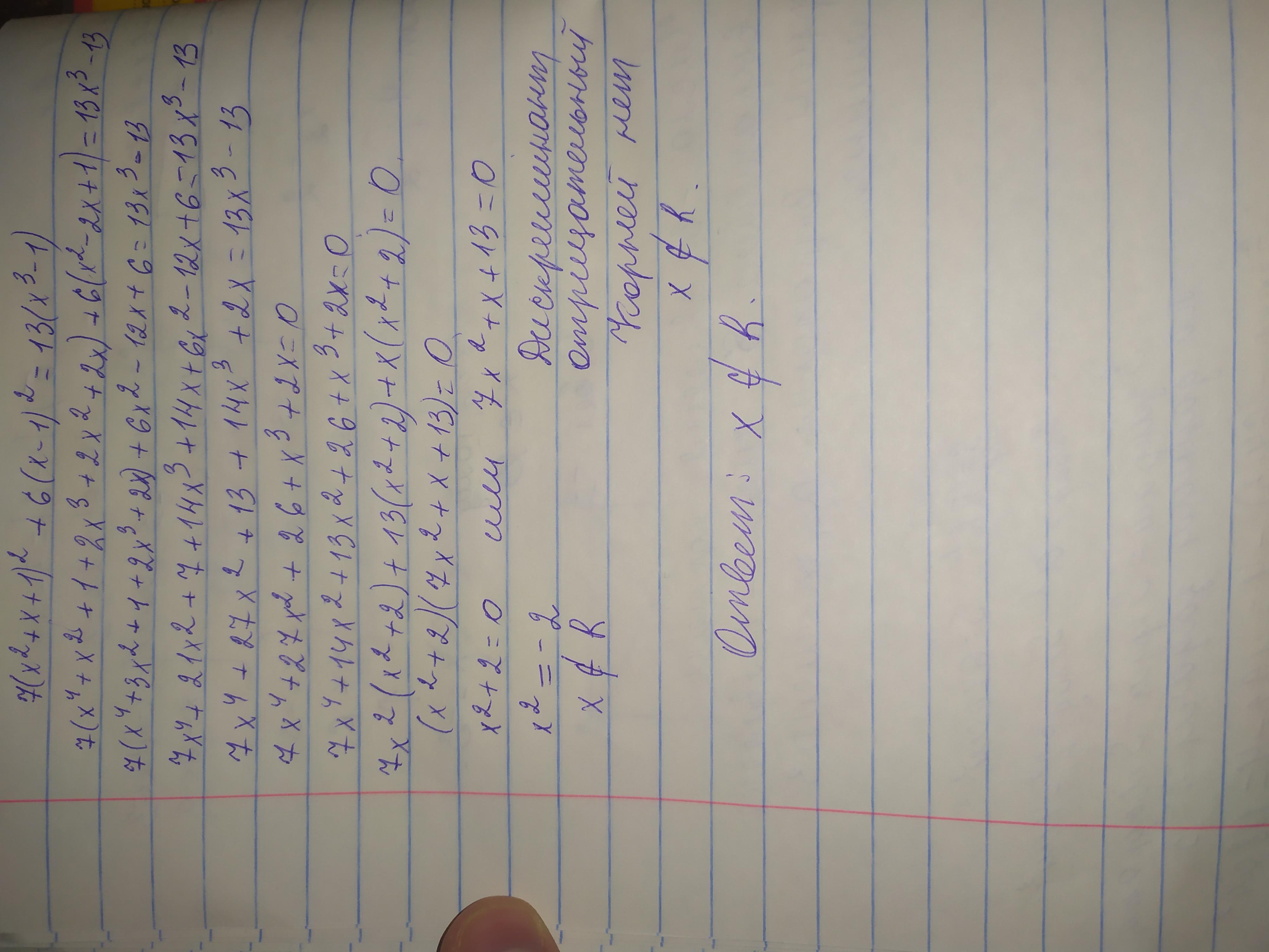 помогите пожалуйста 7(x²+x+1)²+6(x-1)²=13(x³-1)