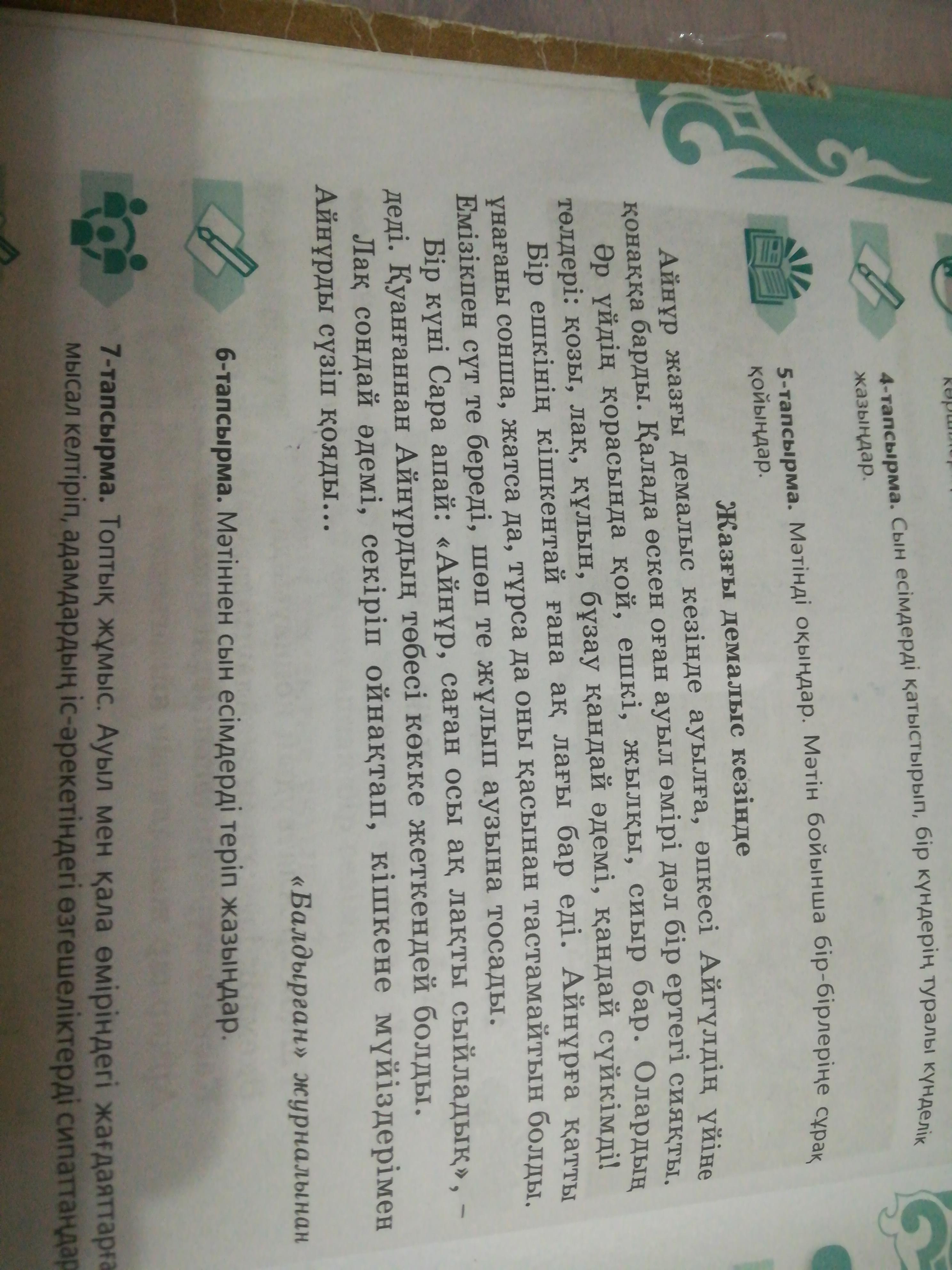5 тапсырма. Мәтінді оқыңдар. мәтін бойынша бір бірлеріңе сұрақ қойыңдар