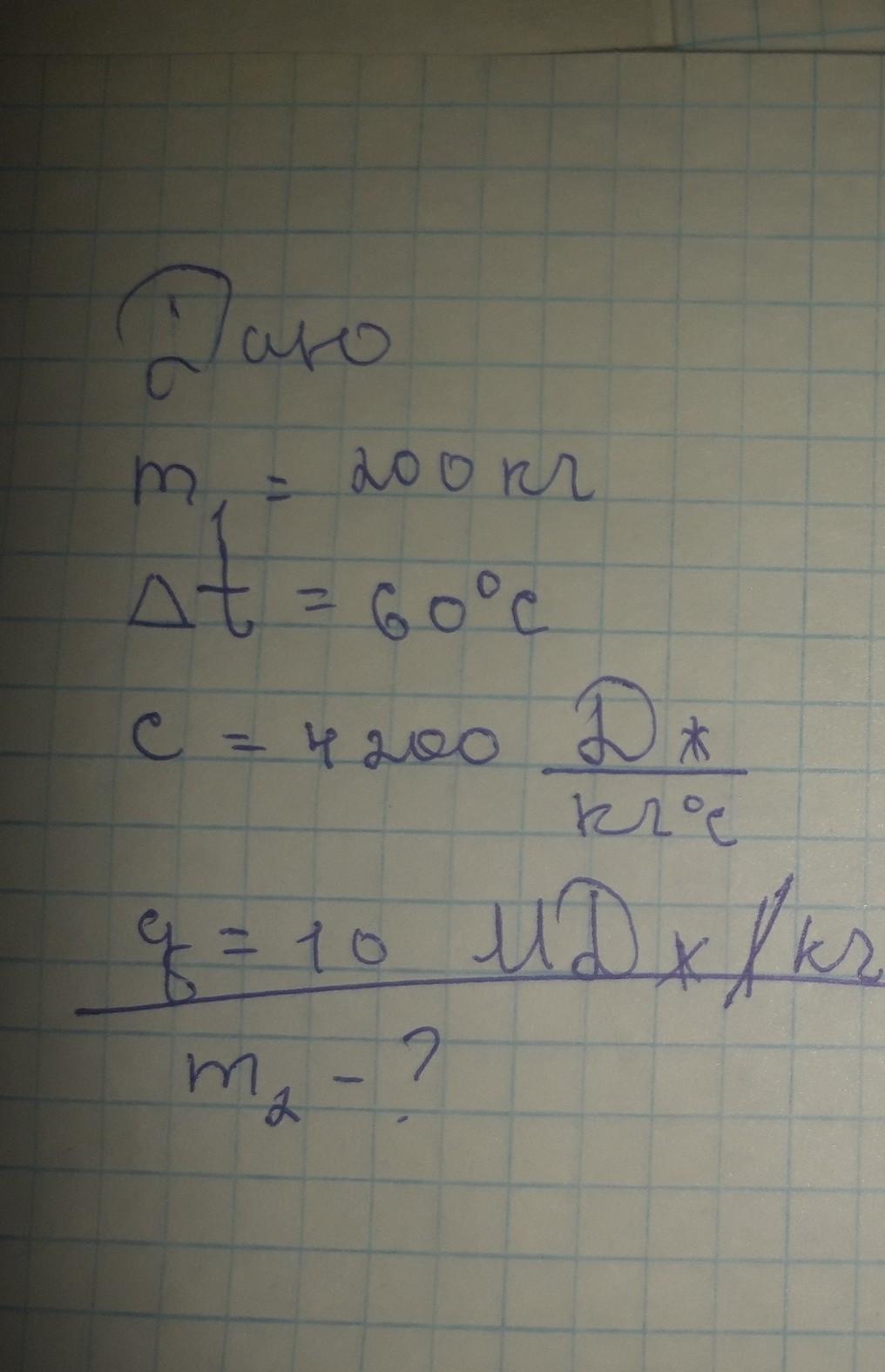Сколько килограмм дров нужно, чтобы нагреть 200 килограмм воды от 10 до 70 градусов? Как написать эту задачу в тетради