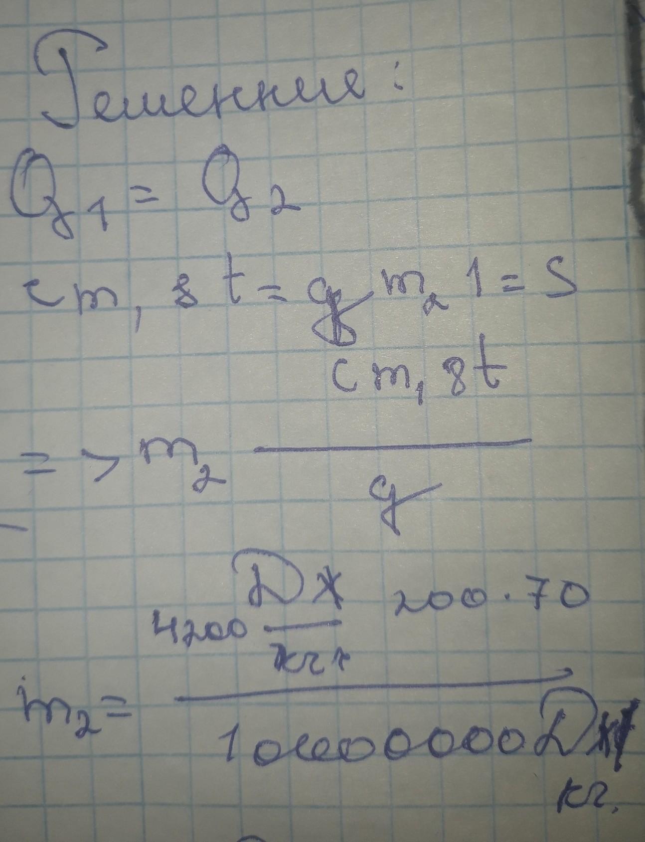 m2=cm1t/q=4200*200*(70-10)/10000000=5.04