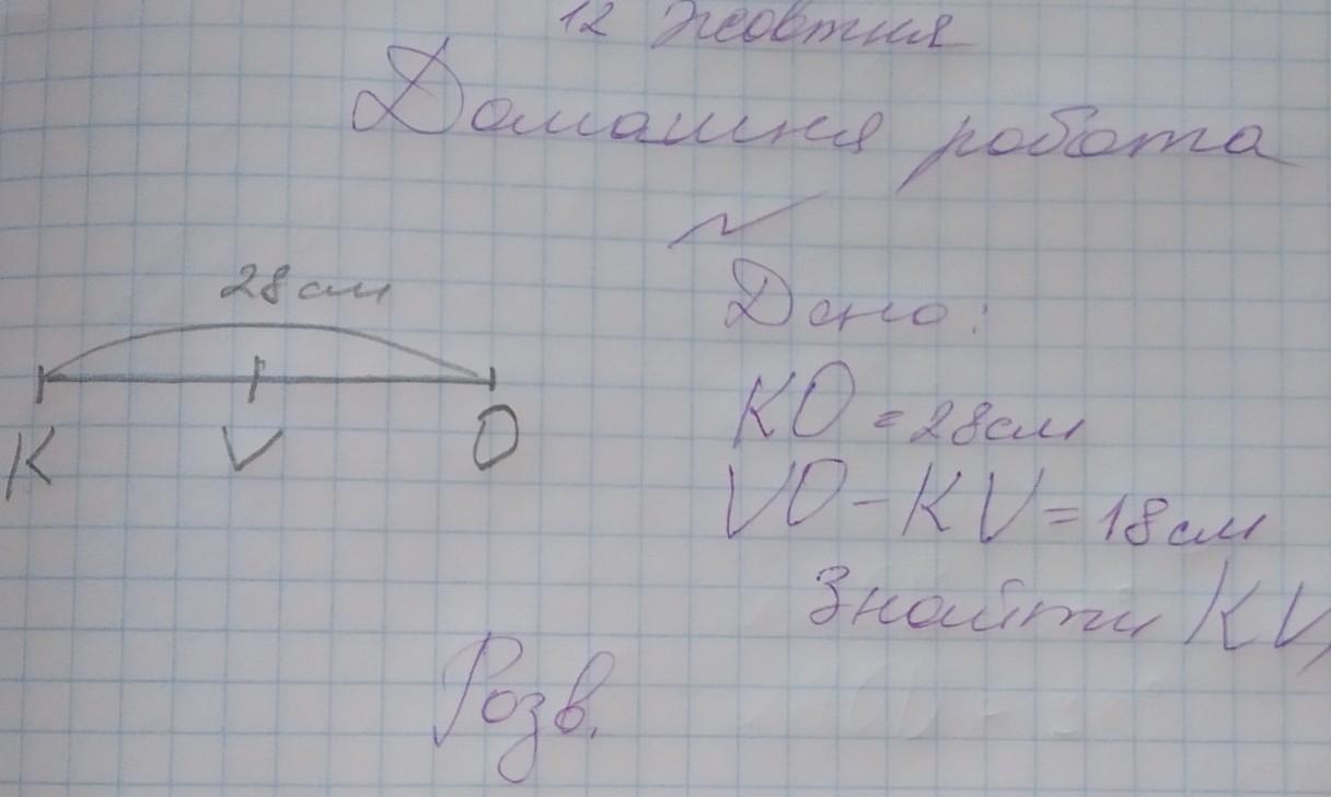 то если от 28 см (отрезка КО) отнять 18 см то получится отрезок VO= 10 см.