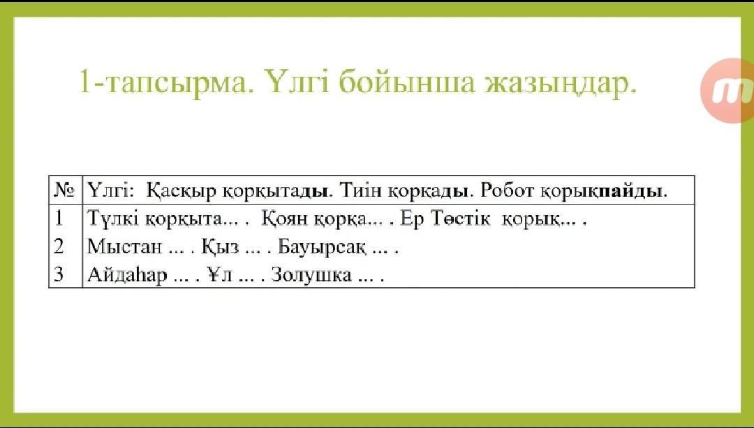 1. Түлкі қорқытады. қоян қорқады.Ер төстік қорықпайды