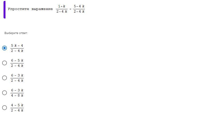 знаменатель одинаковый, значит просто сложим числитель: 1+к+5-4к=