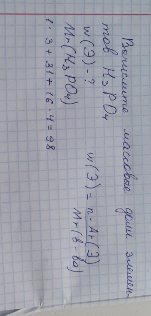W(H) = Ar(H) *n / Mr(H3PO4) *100% = 1*3 / 98 *100% = 3%