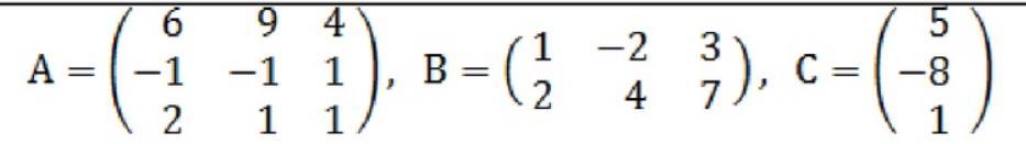 а) возможно ли произведения AB, BC? Если возможно, найти эти произведения; если невозможно, то дать объяснение;