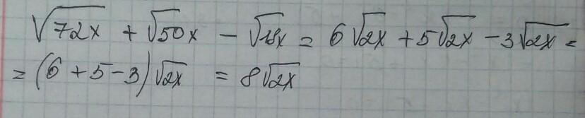 Ответ корень72х+ корень 50х - 3 корень 2х
