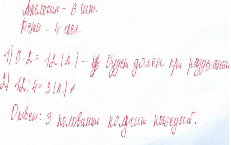Вам нужно разделить 6 апельсинов поровну между четырьмя детьми. Сколько