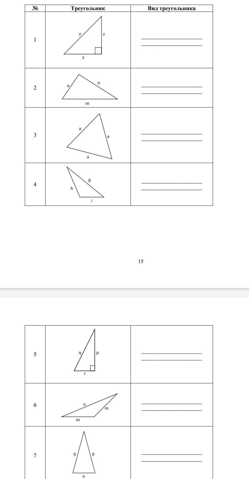 Каждый треугольник имеет два острых угла. Третий угол может быть острым, прямым или тупым. Отсюда треугольники по виду углов делятся на остроугольные, прямоугольные и тупоугольные.
