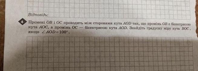 Бісектриса ділить кут навпіл, тому 100:2=50 кут АОС