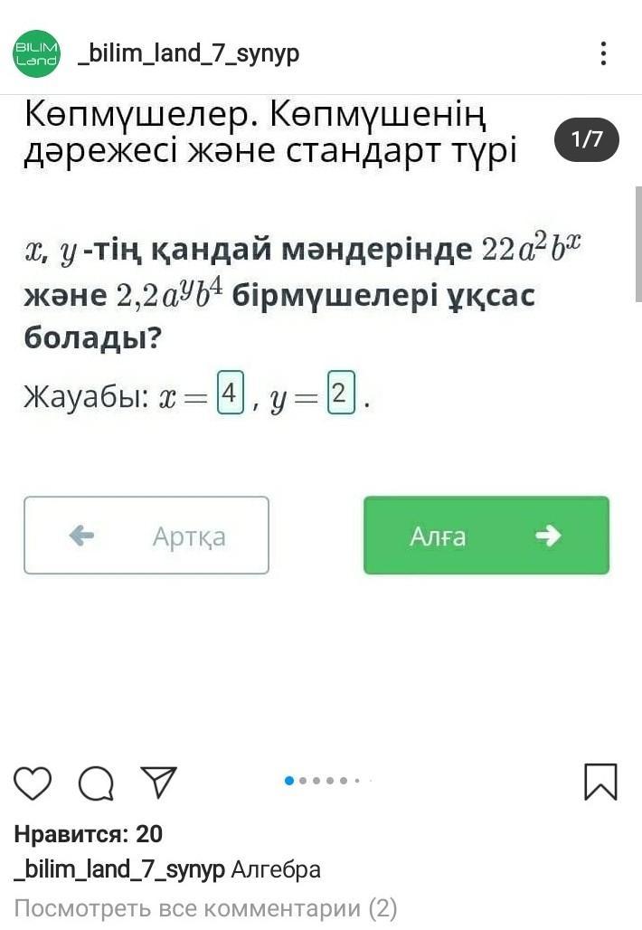 х=4 у=2 инстаграмдағы акаунттан таптым жауабын Дұрыс