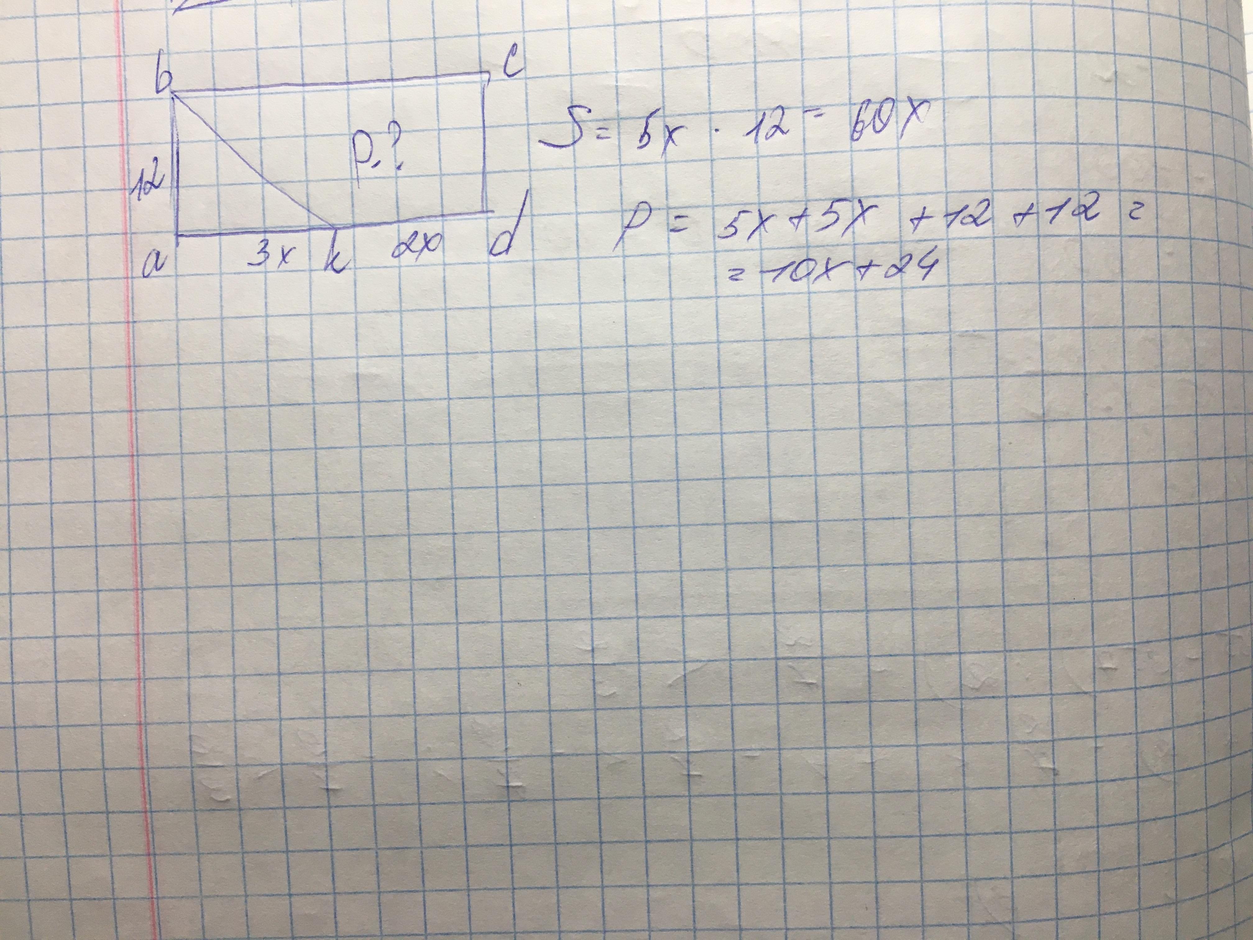 бісектриса кута b прямокутника abcd перетинає сторону ad у точці k причому ak:kd=3:2 знайдіть периметр прямокутника якщо ab=12 см ПОЖАЛУЙСТА