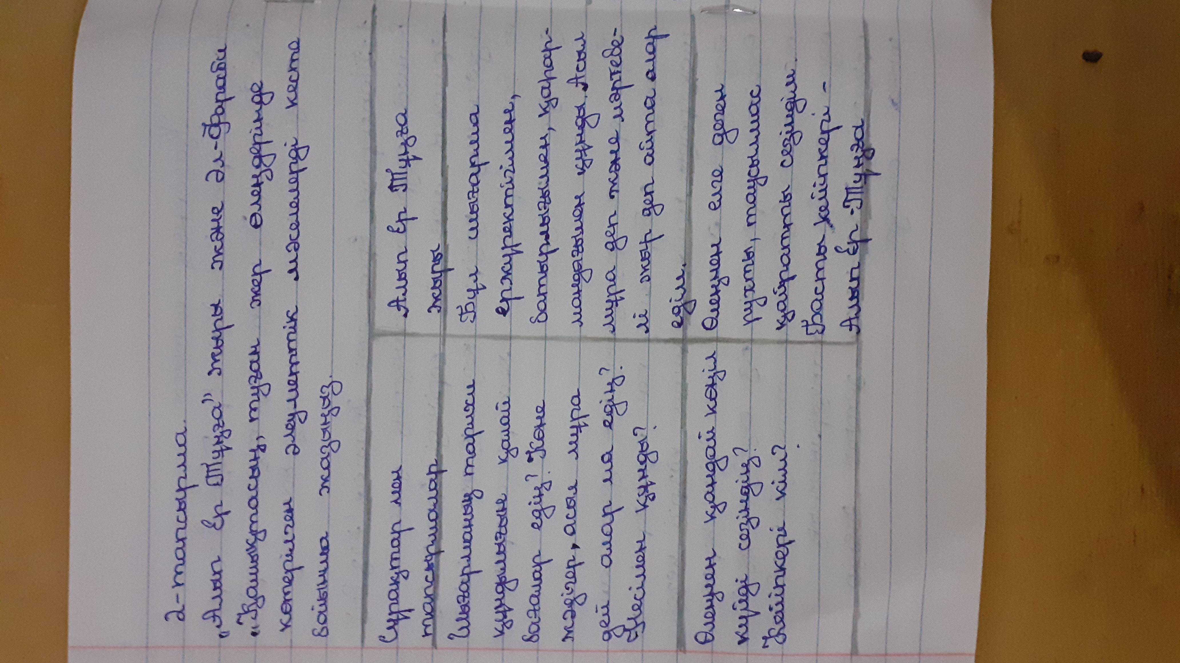 «Алып Ер Тұңға» жыры және Әл Фараби «Қашықтасың, туған жер өлеңдерінде көтерілген әлеуметтік мәселелерді кесте бойынша жазыңыз.