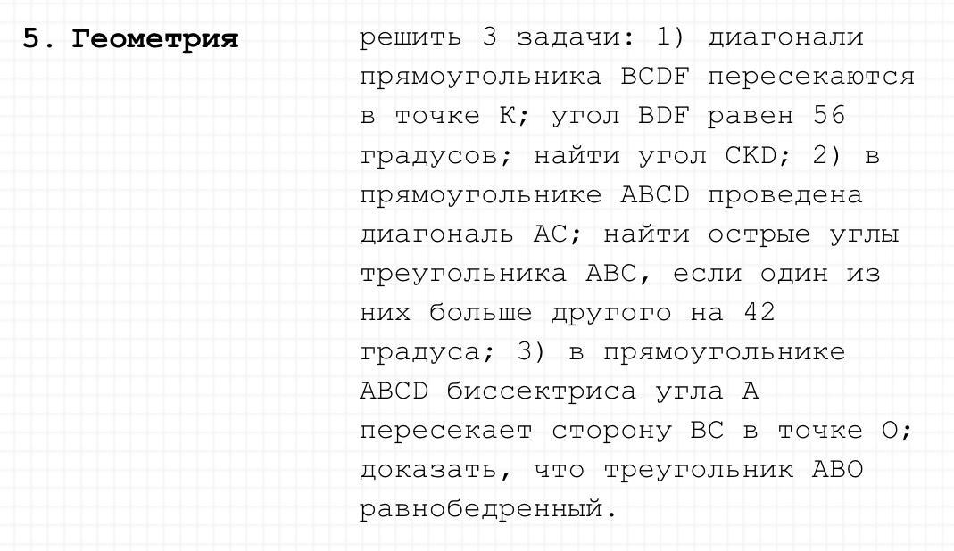 1. ∠CDK=90-56=34°=∠DCK (т. к. диагонали прямоугольника в точке пересечения делятся пополам. Отсюда ∠CKD=180-2*56=180-112=68°