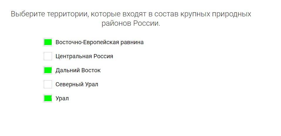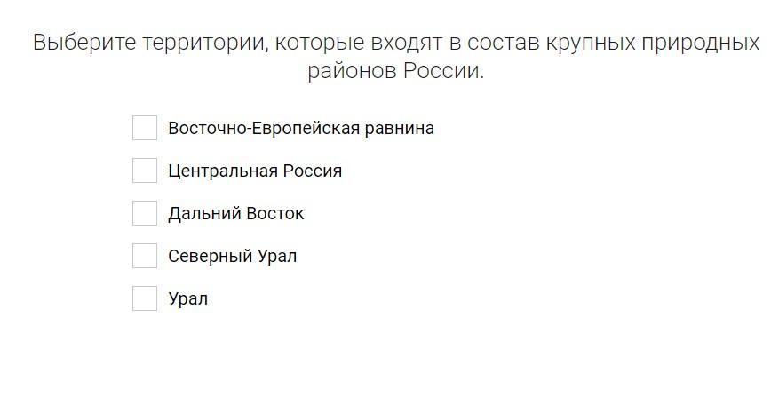 Воспользуемся картой крупных природных районов России. По ней видно, что в состав крупных природных районов России входят: