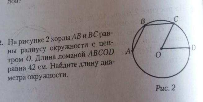 АВ=ВС=ОС=r -по условию, но и ОD=r. Тогда АВ+ВС+ОС+ОD=42 или